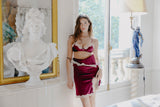 Personnaliser votre caraco Vannina Vesperini en choisissant votre couleur de soie, votre couleur de dentelle et en ajoutant vos initiales.
